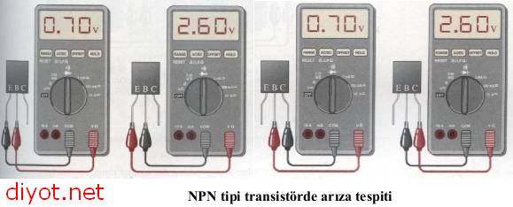 Ölçü aletinizde aldığınız diyot test konumu ölçü aletinde bulunan pilden transistor e doğru ileri bir akım gerçekleştirilir ve ters polarma etkisi yaratır.